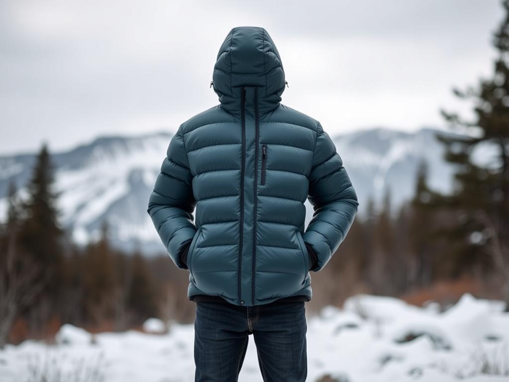 Если вы живете в регионе с частыми оттепелями или слякотью, стоит подумать о водоотталкивающей обработке пуховика или же выбрать синтетику. Для суровых и очень холодных условий — пух, особенно если он высокого качества (например, гусячий).